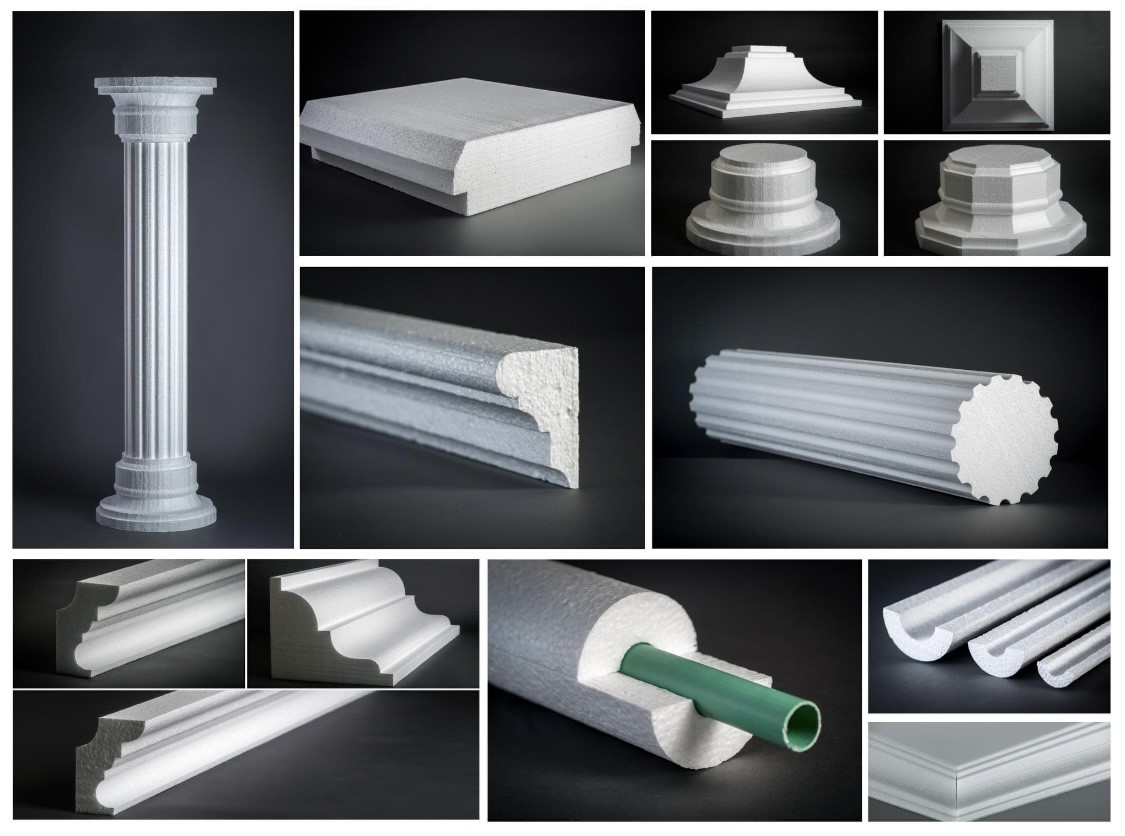 For Exterior deco of molding, trims, Bands, letters, cornice columns, arches, caps and bases and more.